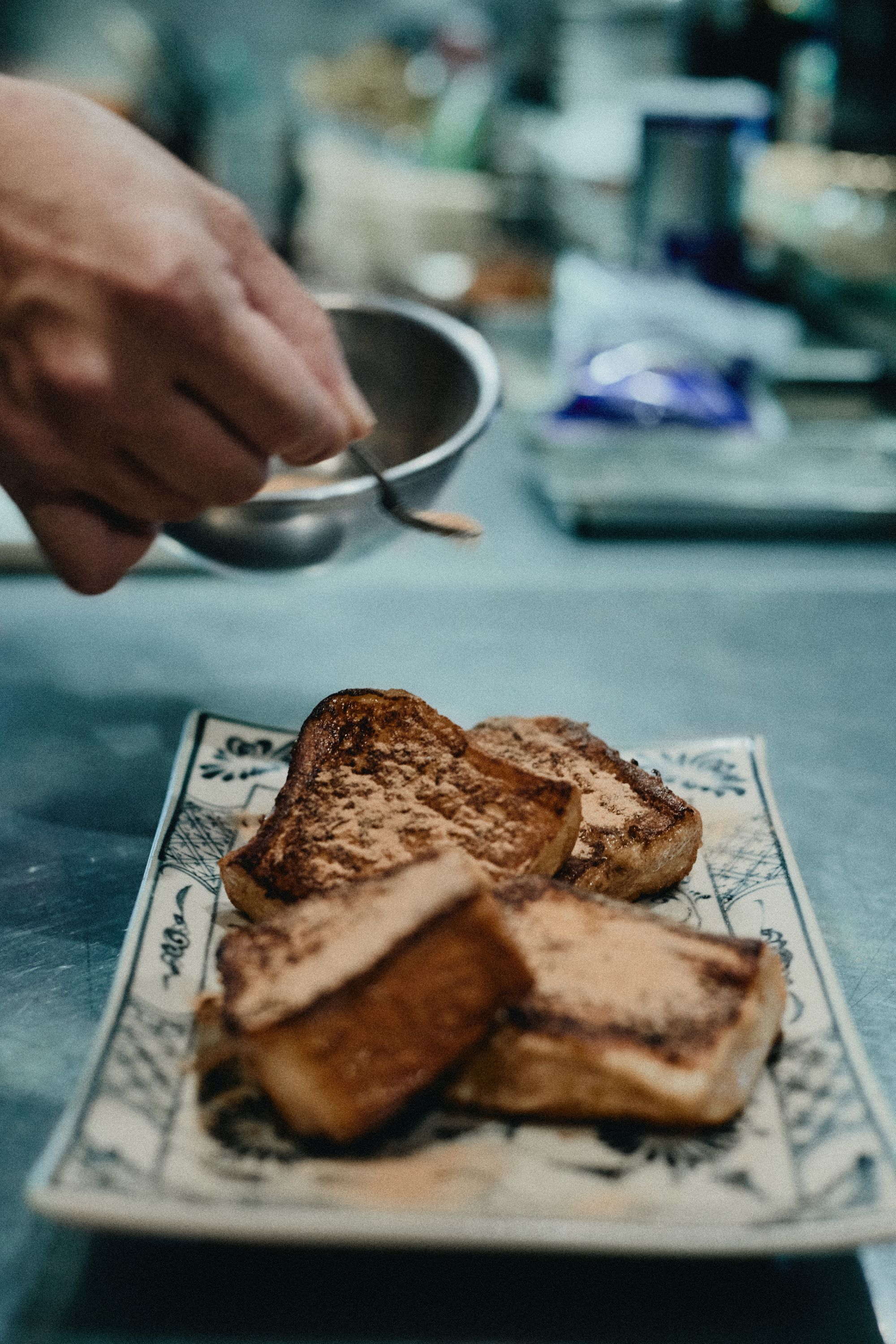 Although the Farmers Market at UNU and its festivals are temporarily suspended due to COVID-19, business doesn’t stop for farmers and producers. The Aoyama Pan Matsuri bread festival was initially scheduled for May, but in lieu of the festival taking place, the Aoyama Pan Matsuri and Farmers Market are offering an exclusive breakfast box containing freshly baked bread, organic vegetables, and free-range eggs. We asked chef Chihiro Naito of popular Vietnamese restaurant Ăn Đi to make his take on the breakfast classic French toast, using some of the items from the Aoyama Pan Matsuri box.