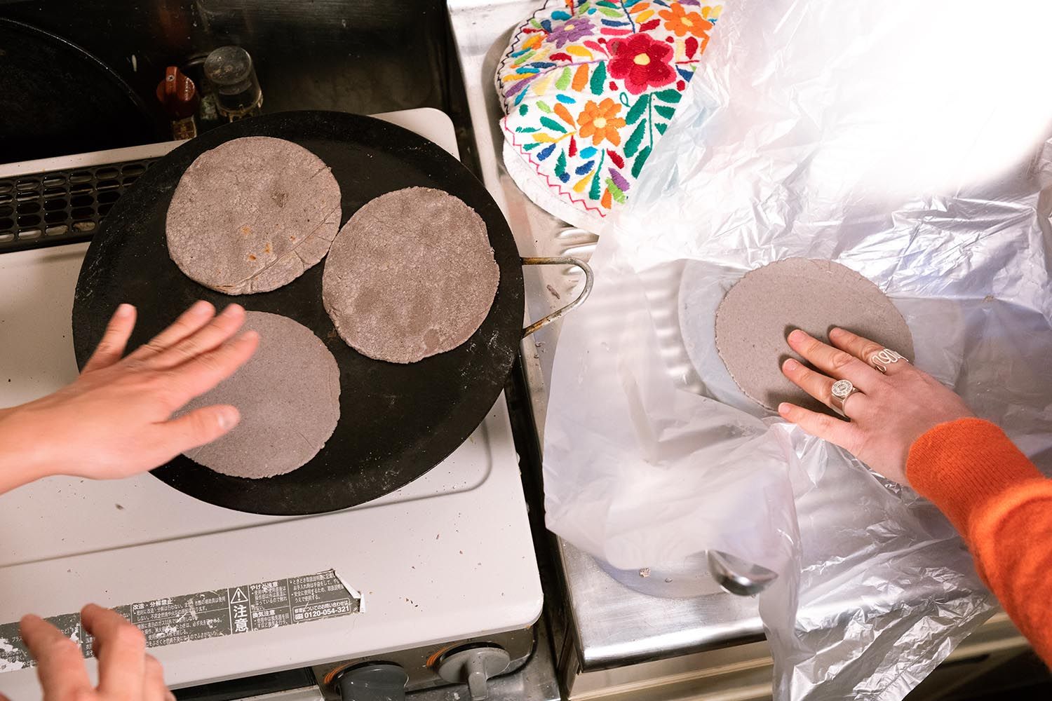 Sultry, humid Tokyo was an appropriate setting for their reunion – Jessie, from the subtropical Australian state of Queensland, and Sofia, from the equally sunny city of Guadalajara in Mexico. The two have endured gruelling spans of distance, but now spend a lot of time in a kitchen that barely fits both of them side by side. One hand balls up pale periwinkle-blue masa and the other squeezes it between a cast-iron press. Another receives the thin sheet and slips it onto a smoking hot pan.