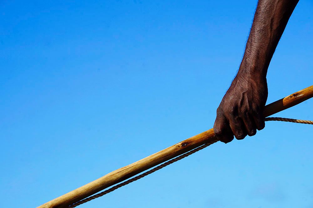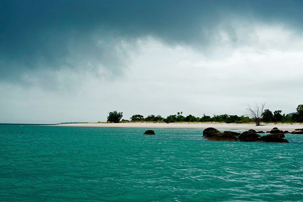 DAY 1 – On arrival into Arnhem Land, we were met by Djawa, the head of the family, and his brother Rrawun. After quick introductions, they escorted us in four-wheel drives through swamps, waterholes, and scrub. There was no road to speak of. After an hour or so, we reached the beach and, soon thereafter, Bawaka. The environment throughout was incredibly diverse and alive: patches of red, iron-rich earth, tropical trees, plants, billabongs and sandbanks.