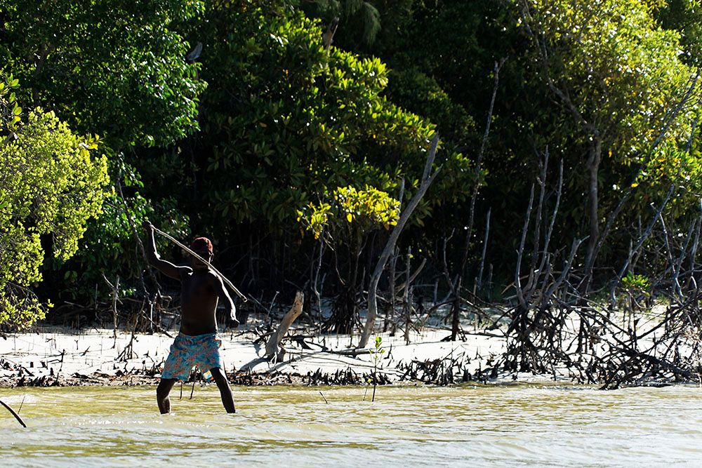 In the afternoon, we went foraging with Rrawun’s younger brother Theo and watched him spearing stingray, which he spotted from some 25 meters away. He also speared some mud crabs while the women and children were harvesting maypal (shellfish).