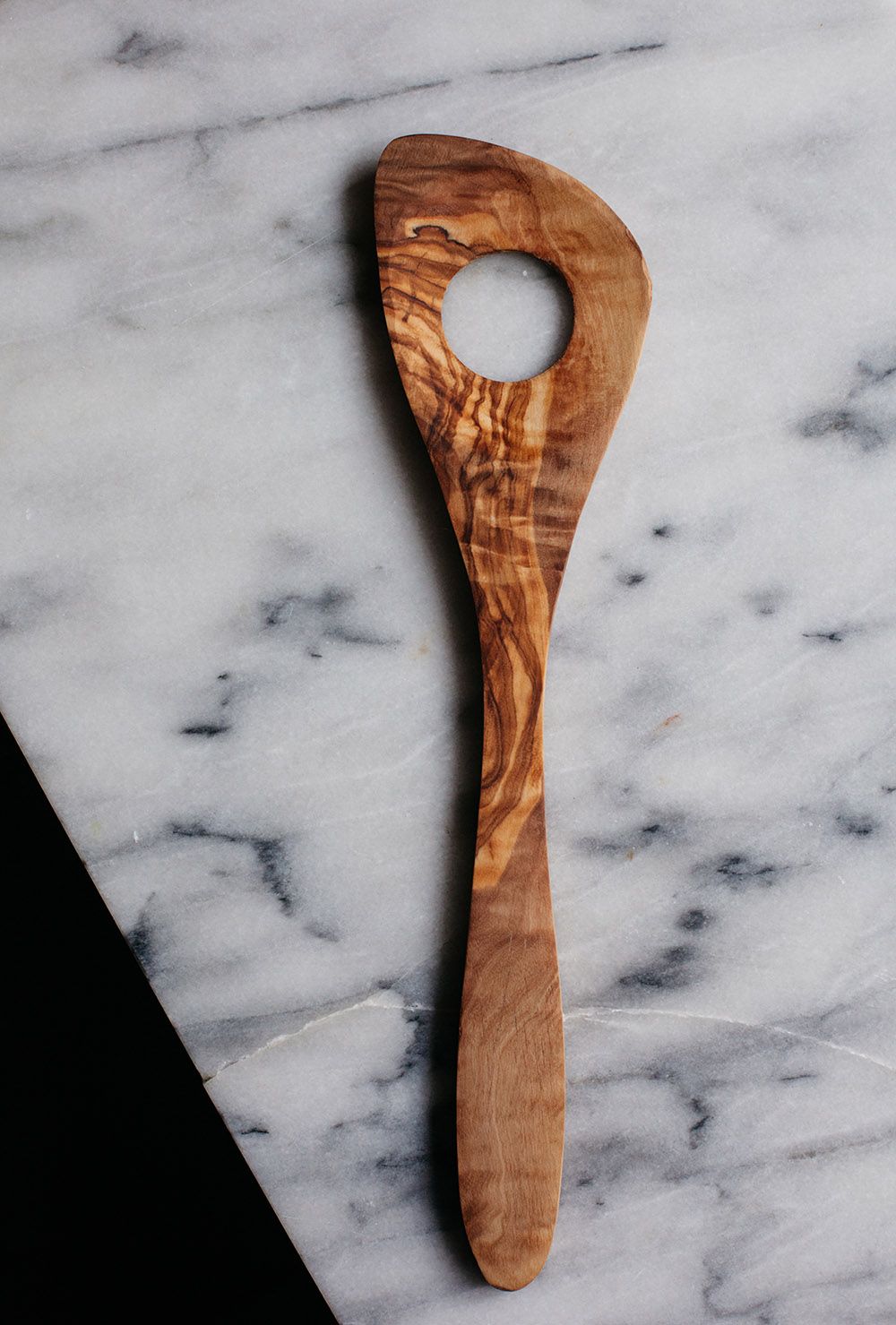 I love wooden spoons, particularly the flat-edged, rectangular ones, and I keep them in all shapes and sizes, many stained with dinners past or with scorched edges from resting on a pot too long – the older the better. My friend Valeria Necchio, a Venetian food writer, was the first person to explain to me that the wooden spoons with a hole through the middle of them are great for stirring risotto. In fact, it is sometimes called a girariso, a “rice rotator,” as the large hole allows the rice to flow freely through the spoon in the opposite direction. In other words, it doubles your stirring effort, and helps create a creamy risotto. For the same reason, it's also the recommended utensil for folding airy batters (like that of sponge cake) and for stirring pastry cream.