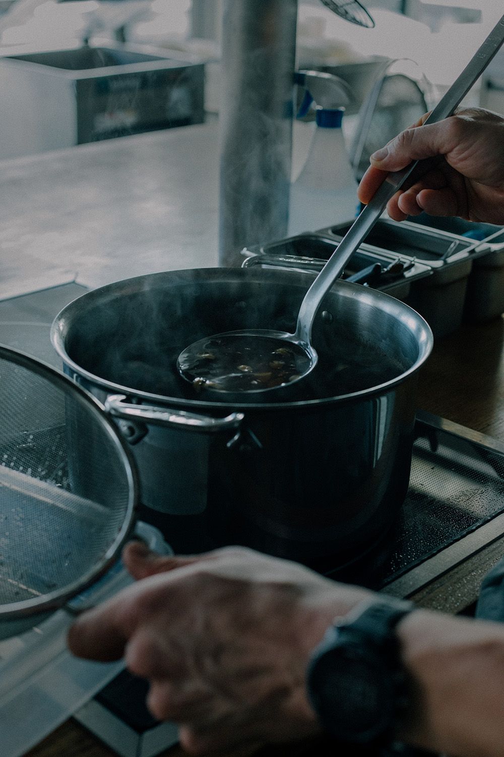 Hirome, the variety that stars in Inua’s Seaweed Mille-Feuille, is a seaweed that grows in the warm currents of Wakayama; an enormous frond – the kanji characters of its name stand for ‘wide cloth’ – hirome is harvested for not longer than four weeks a year. Inua sources their hirome from a group of fishermen in the south coast of Wakayama called Fisherman’s Wharf of Shirahama.