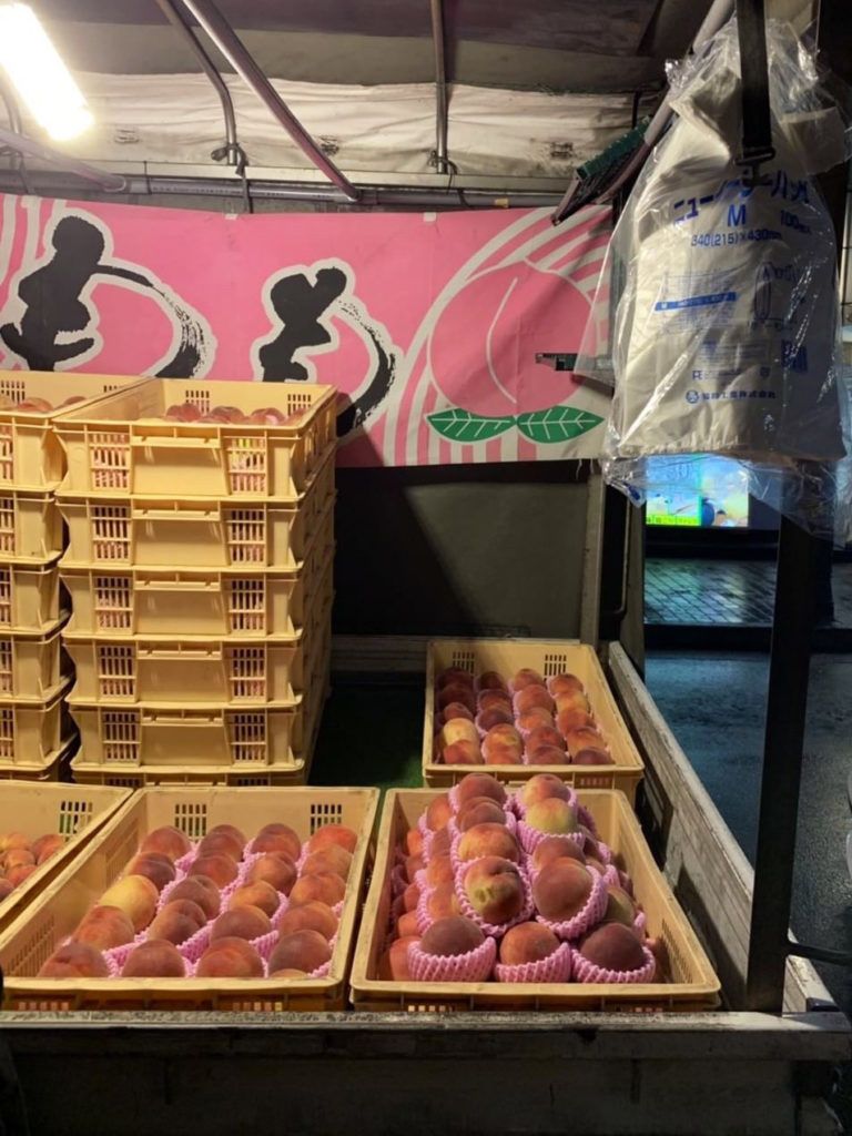 If you’re used to the peaches of the West, the first points of difference you’ll notice are their size – pushing, on average, a hefty 250g-350g each; and the price, especially if you happen on peaches in a department store or specialty fruit parlor (the Tiffany’s of greengrocers), where they may fetch up to ¥1000 ($10 USD) per flawless specimen.
