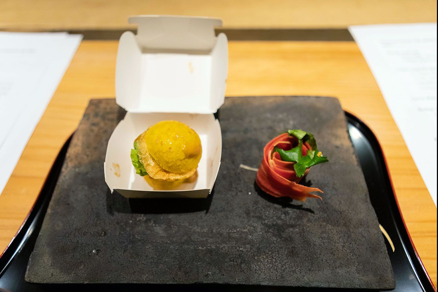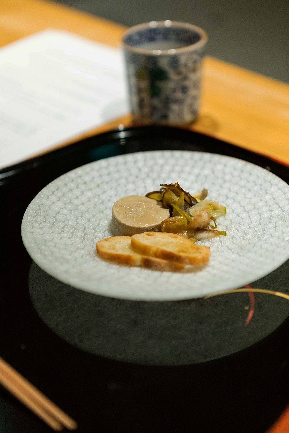 (A) Tasting fresh yuba really blew my mind. I’ve used it before, but never made it fresh, and I’m planning on making it fresh at Dirt Candy soon. Then at the pop-up at Tsurutokame, they used all the vegetable scraps from the vegetables we ate throughout the dinner and turned them into a final course and it really tied the meal together. I’d love to try to do a version of that myself.