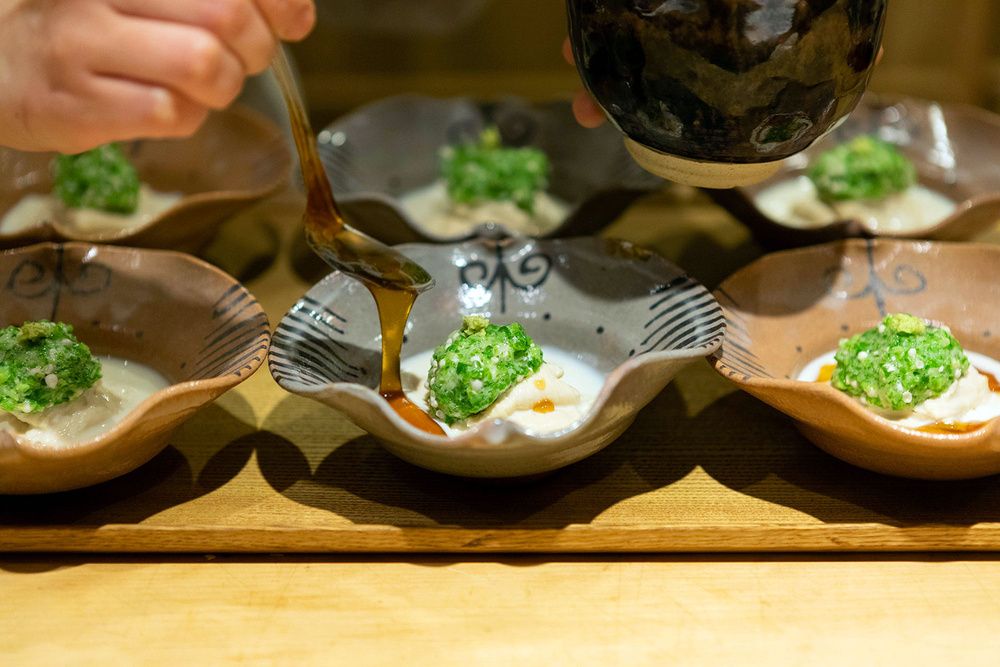 Late 2019, Michael Hallan Turkell – author of Acid Trip: Travels in the World of Vinegars and six-time visitor to japan – brought Amanda to Japan on a meat-free, dairy-free food pilgrimage with Tokyo Tourism. It culminated in a multi-course popup collaboration with local all-female kaiseki restaurant, Tsurutokame in Ginza. Dishes seasonal fruit with tofu sauce and dill, walnut tofu with fermented soy beans; soba noodles with black truffles and field caviar; and even a carrot slider graced the tables.