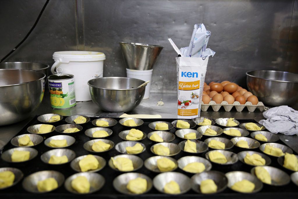 Beira Gare has been going strong since 1890 and opens until midnight. For lunch and dinner, many diners order one of the tasca’s specialties: a bifana, a traditional Portuguese sandwich with marinated pork meat; a bife à la Gare – steak; some kind of bacalhau (dried and salted fish) dish; salgados, small savory pastries like chamosa, small fried-dough triangles filled with chicken and curry, or pasteis de camarão, a shrimp-filled pastry. Through the window, you can see the cook at work, which sharpens the appetite of passers-by.